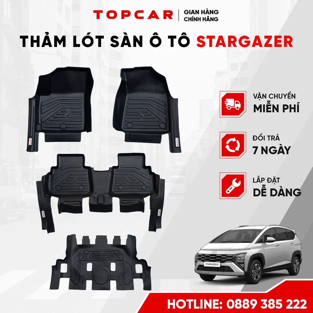 Topcar là đơn vị chuyên cung cấp thảm lót sàn ô tô đo riêng theo từng đời xe, đặc biệt các mẫu MPV như Stargazer. Sở hữu thảm lót sàn phù hợp không chỉ là cách bảo vệ nội thất xe, mà còn là lời khẳng định về sự quan tâm và tinh tế của chủ nhân. Hãy lựa chọn sản phẩm chất lượng – vừa vặn – đúng form – sang trọng cho Hyundai Stargazer tại Topcar.