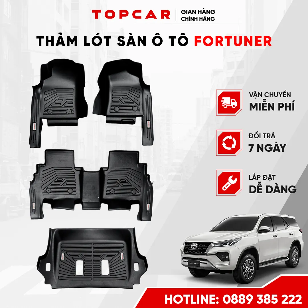 Toyota Fortuner 2008–2016 là dòng SUV bền bỉ, phù hợp gia đình và doanh nghiệp. Xe dễ bám bụi, trầy xước sàn nếu không bảo vệ đúng cách. Thảm lót sàn Toyota Fortuner 2008-2016 của Topcar sẽ giúp bảo vệ sàn xe toàn diện.